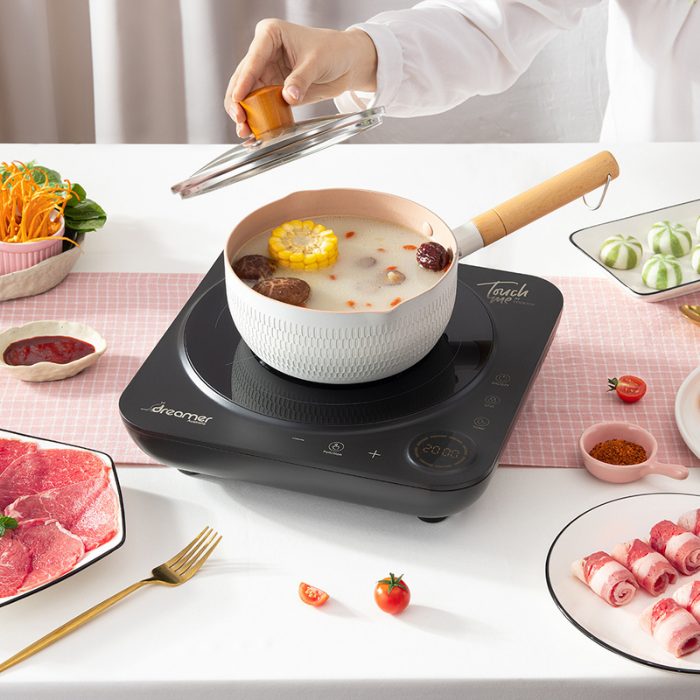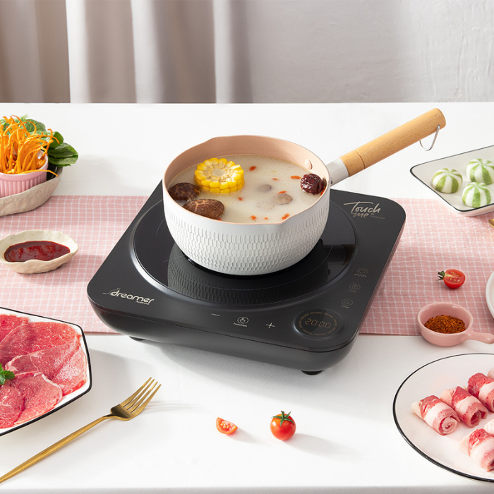 - Mâm từ 2 lớp đồng, dễ nhận dạng đáy nồi và giúp nhiệt phân tán đều cho thời gian nấu nướng nhanh hơn mà vẫn đảm bảo dưỡng chất trong thực phẩm.