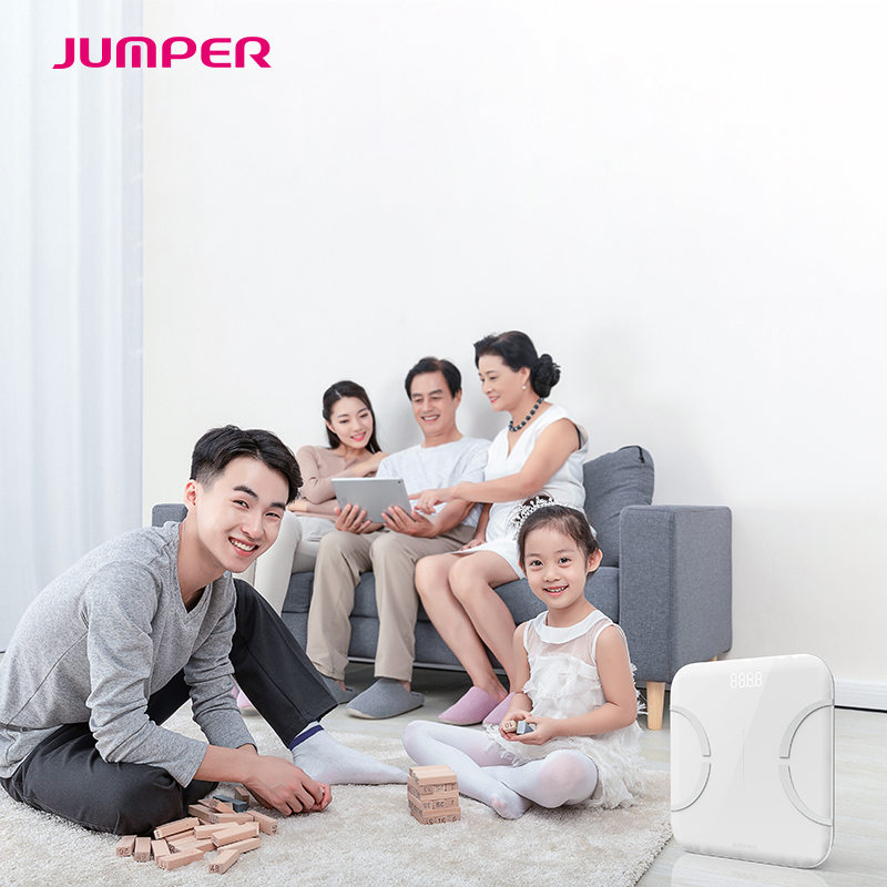 Cân phân tích sức khỏe thông minh Jumper là dòng cân sức khỏe và phân tích cơ thể, có chức năng đo lường và tính toán các chỉ số liên quan đến cơ thể bằng cách sử dụng các công thức y học dựa trên cân nặng, điện trở kháng đo được và những chỉ số cá nhân của bạn. 14 chức năng đo của cân: Cân nặng, tuổi chuyển đổi, tỷ lệ trao đổi chất, khối lượng cơ, tỷ lệ phần trăm mỡ, tỷ lệ mỡ nội tạng, chỉ số BMI,... sẽ giúp các thành viên trong gia đình bạn theo dõi tình trạng sức khỏe, thể trạng thường xuyên tiện lợi nhất ngay tại nhà định kì.