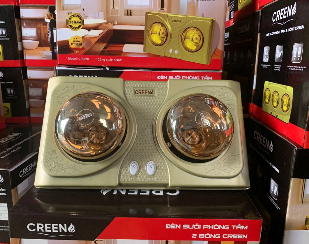 Đèn sưởi nhà tắm 2 bóng CREEN CR-02B, bảo hành 12 tháng