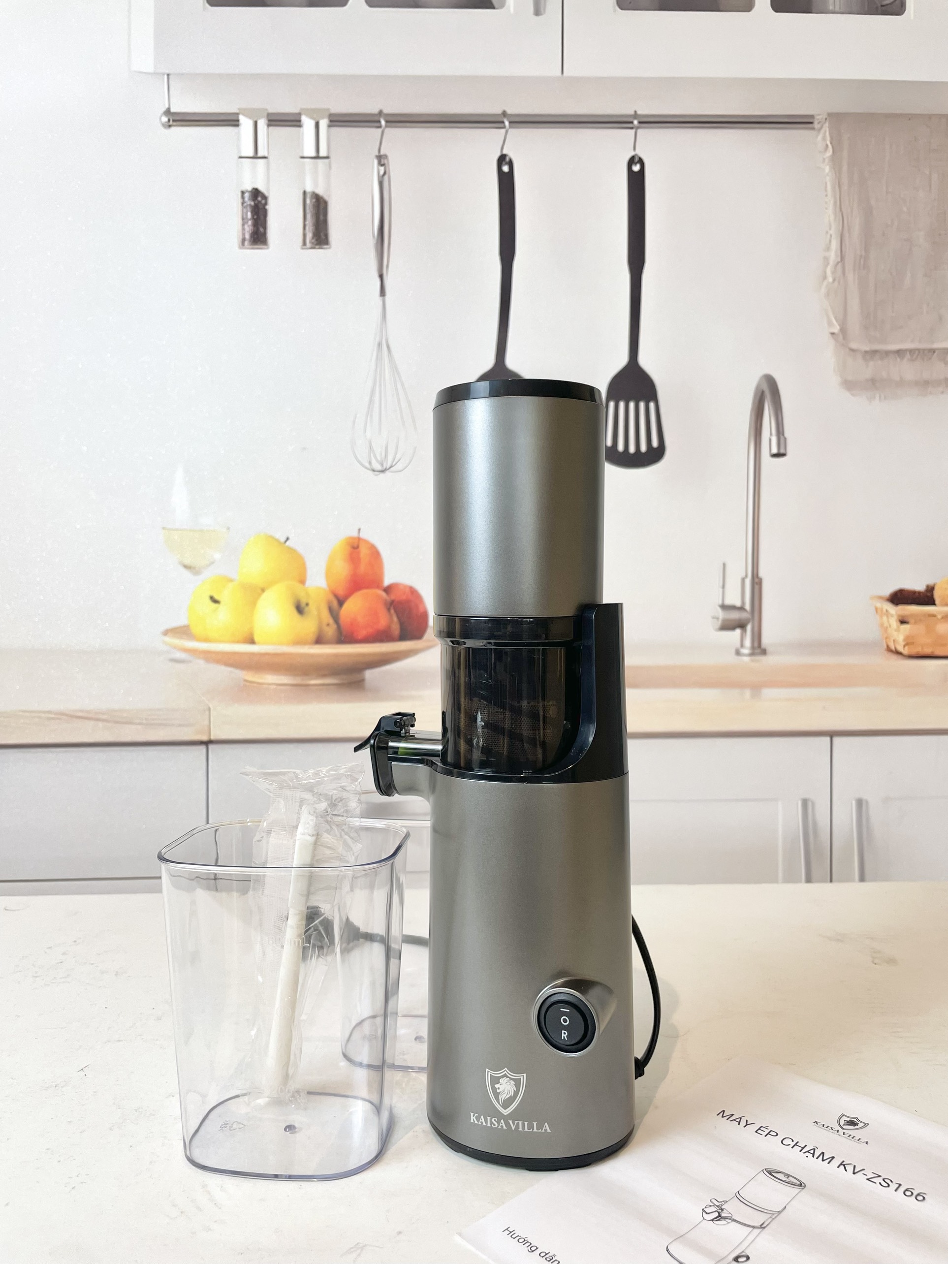 Thông số kỹ thuật: - Mã hàng: KV-ZS166 - Thương hiệu: Kasai Villa - Công suất: 135W - Điện áp: 220V/50Hz - Tốc độ quay: khoảng 60 rpm, chân cao su chống trượt - Mức độ tiếng ồn: - Trọng lượng: 2 kg - Chiều dài dây nguồn: 1.1m - Dung tích cốc đựng nước sinh tố: 800ml , có dụng cụ đẩy thức ăn - Dung tích cốc đựng bã: 600ml, có bàn chải làm sạch