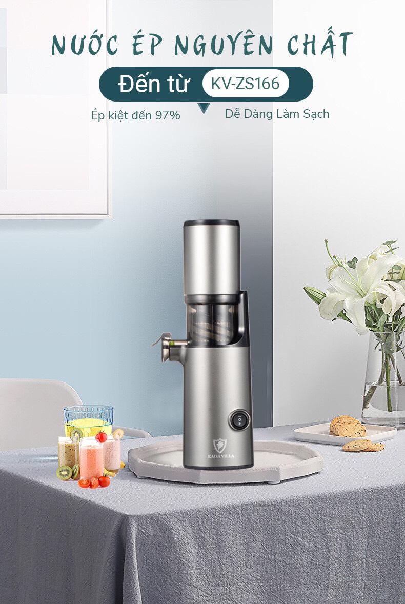 Giữ vitamin, dinh dưỡng có trong thực phẩm : - Máy ép KV-ZS166 hoạt động rất mạnh, giữ được tới 97% vitamin và enzyme trong trái cây. Máy ép được nhiều nước hơn và kiệt bã hơn so với máy ép thông thường. Nước ép cho chất lượng nước ép đậm đặc hơn, giữ nguyên hương vị và không bị phân tầng, tách nước.