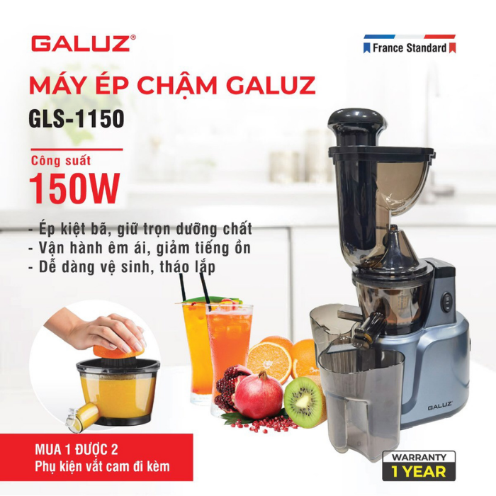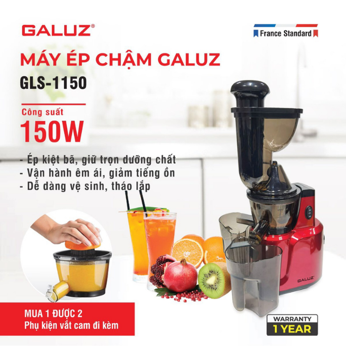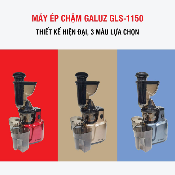 - Phiên bản máy ép chậm GLS-1150 có công suất lớn 150W có khả năng ép những củ quả có kích thước đa dạng hơn. Máy ép chậm lớn GLS-1150 có thiết kế sang trọng, đẹp mắt, trang nhã đem đến vẻ hiện đại và tiện nghi cho căn bếp của gia đình bạn.