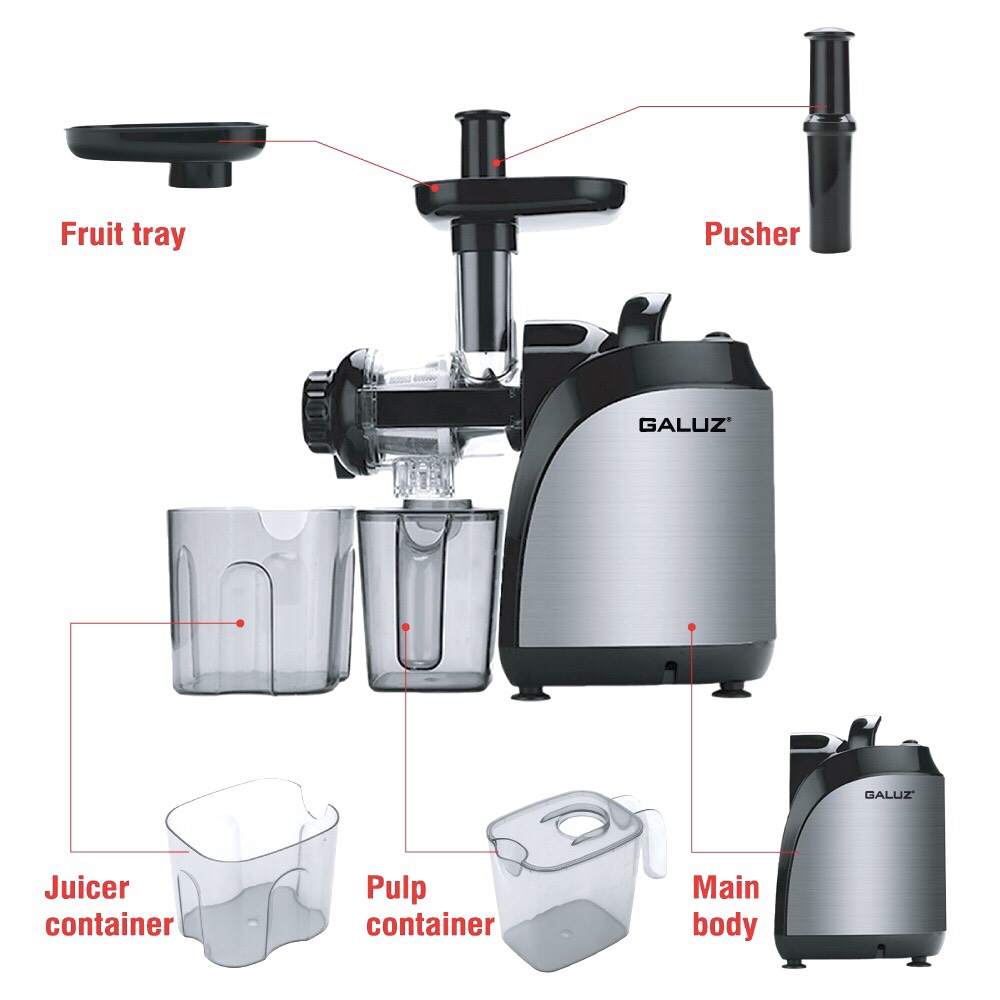 Các bộ phận, phụ kiện của máy được tháo lắp rất dễ dàng, đi kèm với sản phẩm máy ép chậm Galuz GLS-16N có các phụ kiện: