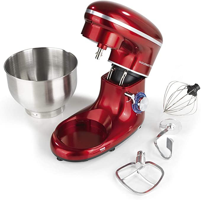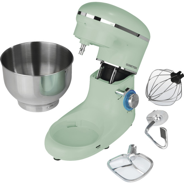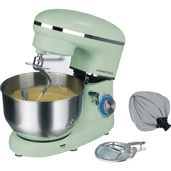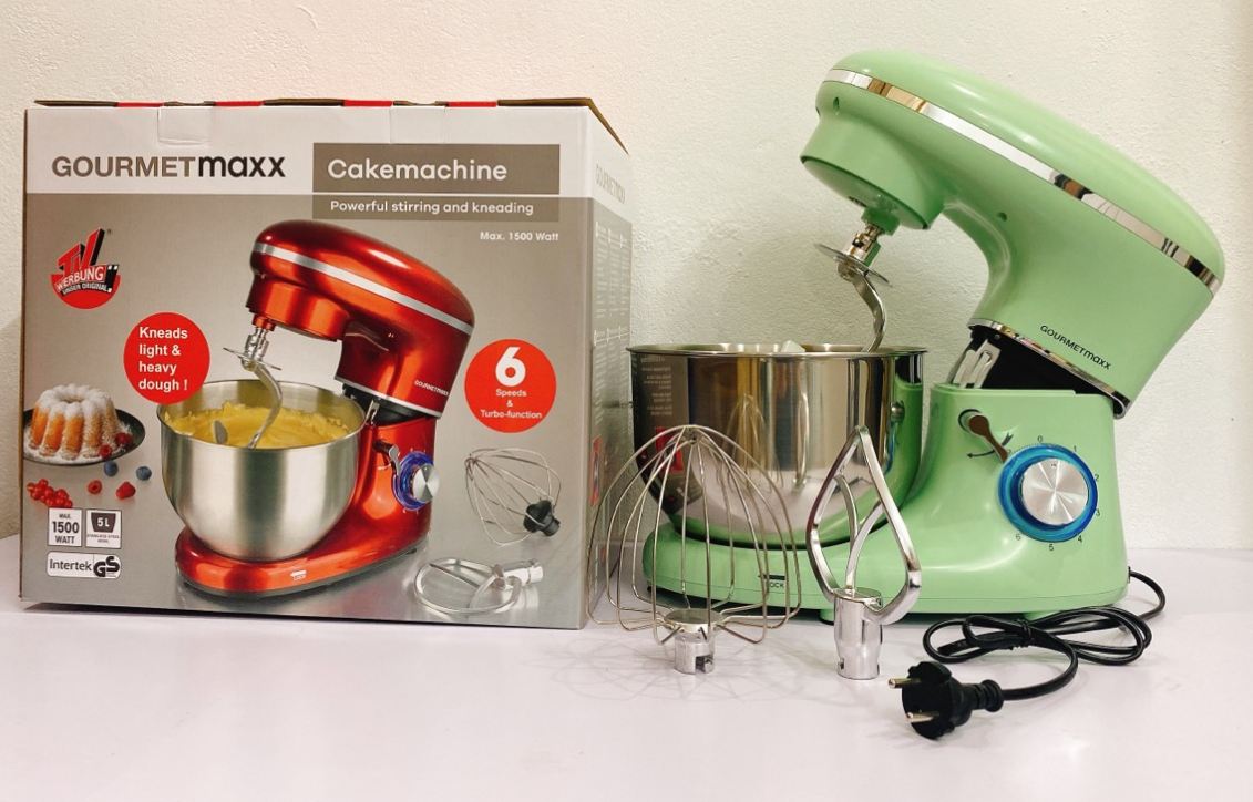 Tô trộn làm từ inox 304, 3 đầu đánh (đánh bột, đánh kem, trộn salad) đi kèm làm từ thép không gỉ an toàn cho thực phẩm. Máy nhào bột Gourmetmaxx SM-1504 gồm 3 màu để lựa chọn: Green, Blue, Red.