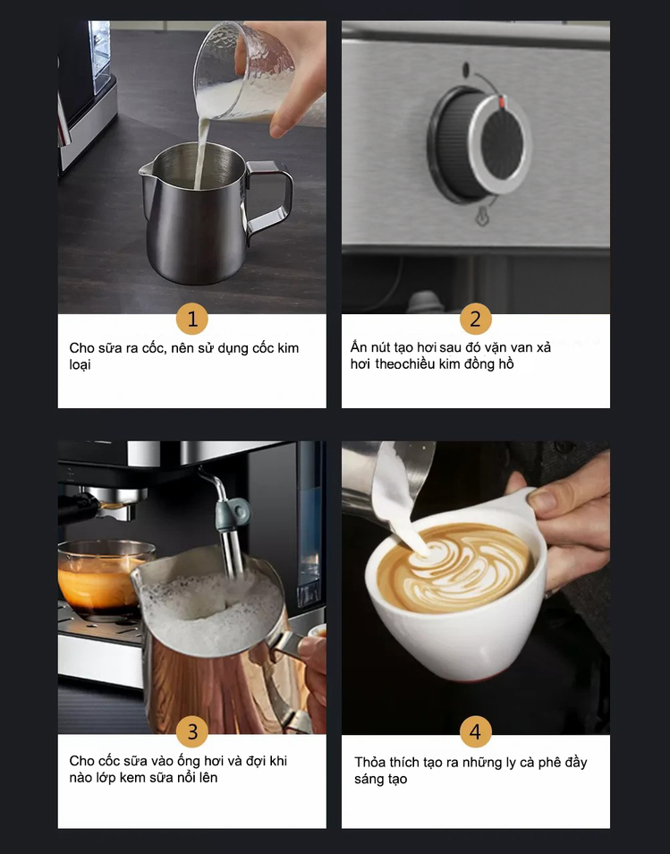 Chức năng: Pha cà phê Espresso, Cappuccino, Latte,…
