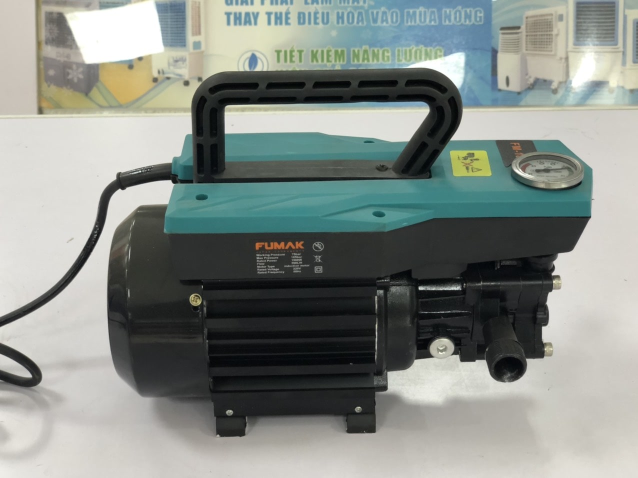 Máy rửa xe gia đình Fumak FM18 được đánh giá cực kỳ cao bởi hội người tiêu dùng trên cả nước, bởi những tiện ích, ưu điểm mà nó đem lại. Sản phẩm sử dụng mô tơ khỏe, được cuốn 100% dây đồng, với công suất 1900W, sử dụng điện áp tần số 220/ 50V-Hz, cho áp lực phun nước từ 90- 130 bar. Lưu lượng nước nước phun ra trong vòng 1 phút là khoảng 8 lít nước, giúp cho việc rửa xe trở nên đơn giản, nhanh chóng hơn.