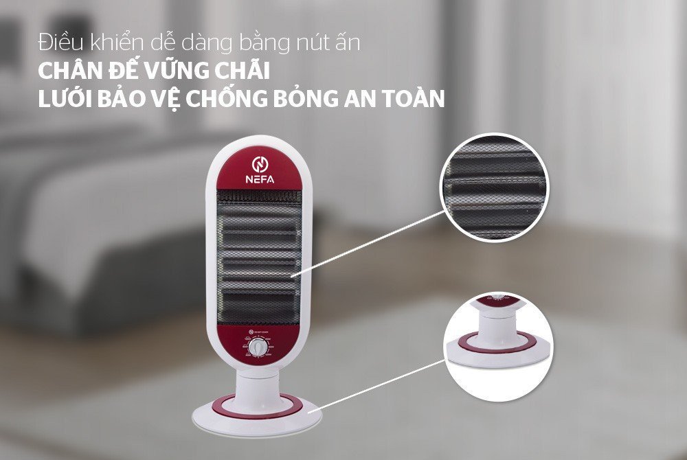 + Chắc chắn, bền đẹp, an toàn NEFA NFD7 có chân đế vững chãi, lưới bảo vệ, tránh gây bỏng cho người dùng. Đặc biệt, lồng và vỏ nhựa phía sau chống cháy tuyệt đối, lưới tản nhiệt giúp sản phẩm không bị hư hỏng do quá nóng.