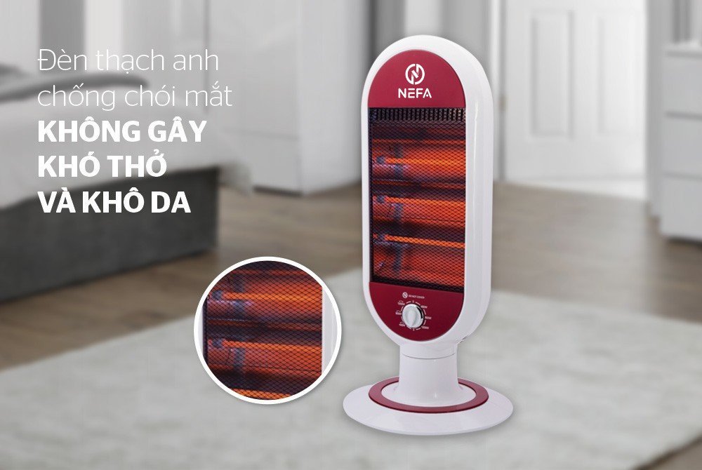 Làm ấm cực nhanh, không gây khô da NEFA NFD7 sử dụng đèn hồng ngoại, làm ấm cực nhanh, độ bền vượt trội, chống chói mắt hiệu quả và không đốt cháy oxy nên không gây khó thở hay khô da khi dùng.