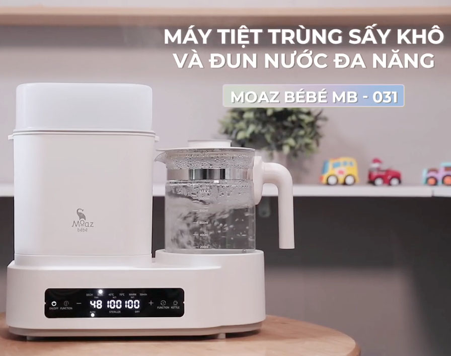 Đun nước, khử clo và giữ nhiệt lên tới 48h: Pha sữa nhanh chóng chuẩn nhiệt độ cùng bình đun nước thể tích 1,2L rộng rãi. Chỉ 1 lần đun đã có nước pha sữa cho bé cả ngày; đặc biệt bình đun MB031 có thể giữ ấm liên tục trong 48h; tự động khử clo giúp nước tinh khiết, an toàn.