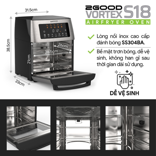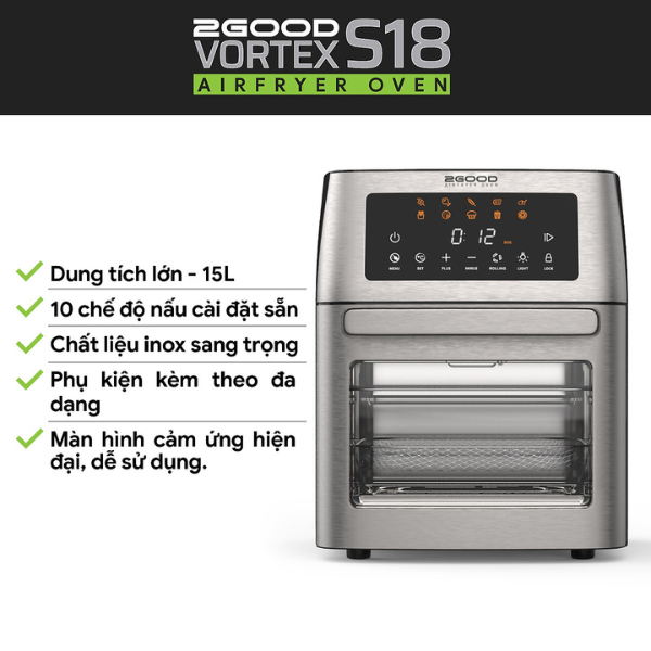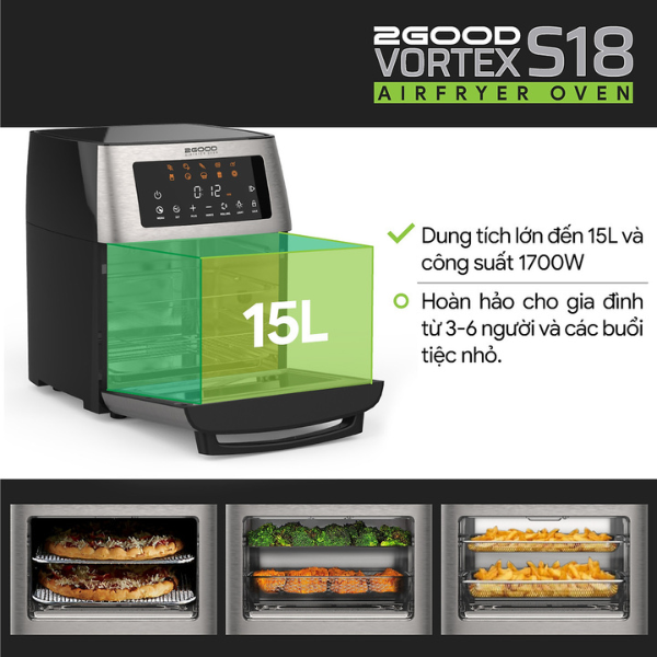 Nồi Chiên Không Dầu 2GOOD Vortex S-18 Air Fryer Oven (15 Lít) - Hàng Chính Hãng