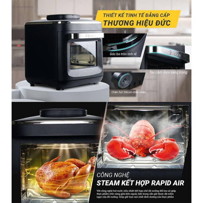 Xin giới thiệu Siêu phẩm mới Nồi Chiên Không Dầu Hơi Nước Kalpen X15, là bước đột phá với công nghệ Steam Frying, giải quyết vấn đề khô mất chất của đồ ăn khi chiên. Đạt kết cấu hoàn hảo 5 sao, thêm giòn, ngon ngọt cho mỗi món ăn của bạn bằng cách kết hợp Chiên Hấp trong một chiếc nồi. Qua đó tạo ra những thành quả tuyệt ngon. Giúp bạn thưởng thức các món ăn, đồ ăn nhẹ và món tráng miệng... thêm hấp dẫn. Công nghệ Steam Frying tiên tiến của chúng tôi sử dụng áp suất phù hợp cung cấp đủ độ ẩm trong khi vẫn giữ lại các vitamin và chất dinh dưỡng trong thịt gà, thịt, khoai tây, rau và cá của bạn.. Khay nước chất liệu cao cấp, được đúc khuôn độc nhất vô nhị của chúng tôi mang đến cho thịt của bạn hương vị tuyệt vời và hoàn hảo. Tiện lợi nhất là dung tích lớn nhất từ trước đến nay chứa được tới 15 lít thực phẩm, được coi như một loại nồi chiên không dầu size XXL. Giờ đây, bạn dễ dạng phục vụ một bữa ăn thịnh soạn cho đủ 8 người. Giảm tới 99% chất béo, giúp bạn có một chế độ ăn uống lành mạnh hơn. Tăng hương vị cho các món ăn, ít calo hơn cho sức khỏe và thêm lựa chọn cho việc nấu nướng. Kalpen tự hào giúp cuộc sống của bạn dễ dàng, thông minh và lành mạnh hơn.