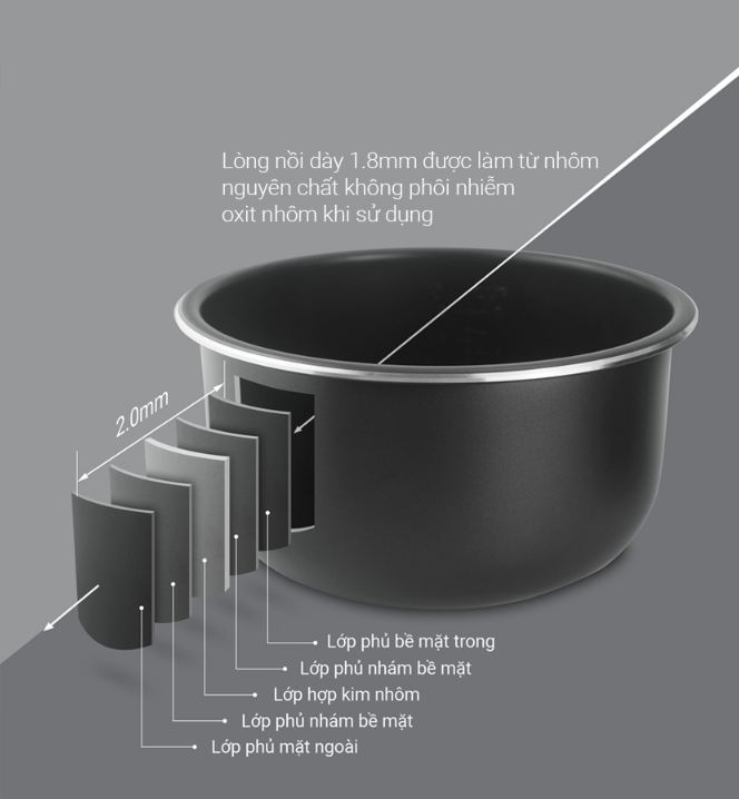 1. Nồi cơm điện cao cấp Kalpen R3 được phủ chất chống dính Whitford không chứa PFOA siêu bền và an toàn cho sức khỏe. 2. Lòng Nồi cơm điện cao cấp Kalpen R3 dày 2mm được làm từ nhôm nguyên chất không phôi nhiễm oxit nhôm khi sử dụng 3. Nồi cơm điện cao cấp Kalpen R3 sử dụng chất chống dính ceramic tự nhiên với cấu tạo 5 lớp cho khả năng chống dính siêu việt và tuyệt đối an toàn cho sức khỏe 4. Dung tích 1L phù hợp với nhu cầu cuộc cuộc sống hiện đại và không gây lãng phí. Sinh viên, người già và gia đình nhỏ 1-4 người đều phù hợp. 5. Nồi cơm điện cao cấp Kalpen R3 sử dụng công nghệ ủ nhiệt 3D cho cơm luôn nóng sốt