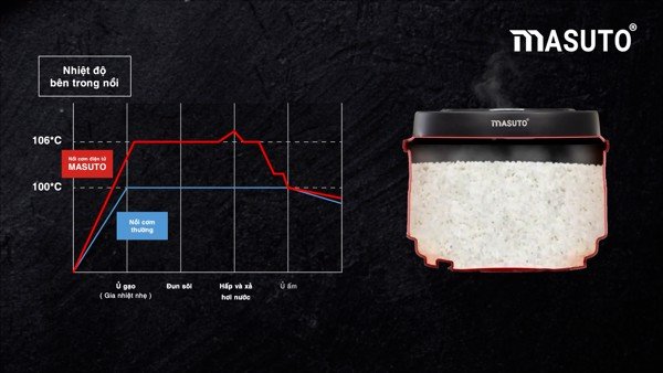 Công thức này đã được giả lập quy trình nấu tự động bằng chíp điều khiển thời gian đúng theo quy trình như vậy để có được nồi cơm ngon đạt chuẩn từ nồi cơm điện tử lòng niêu 3D masuto.