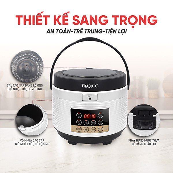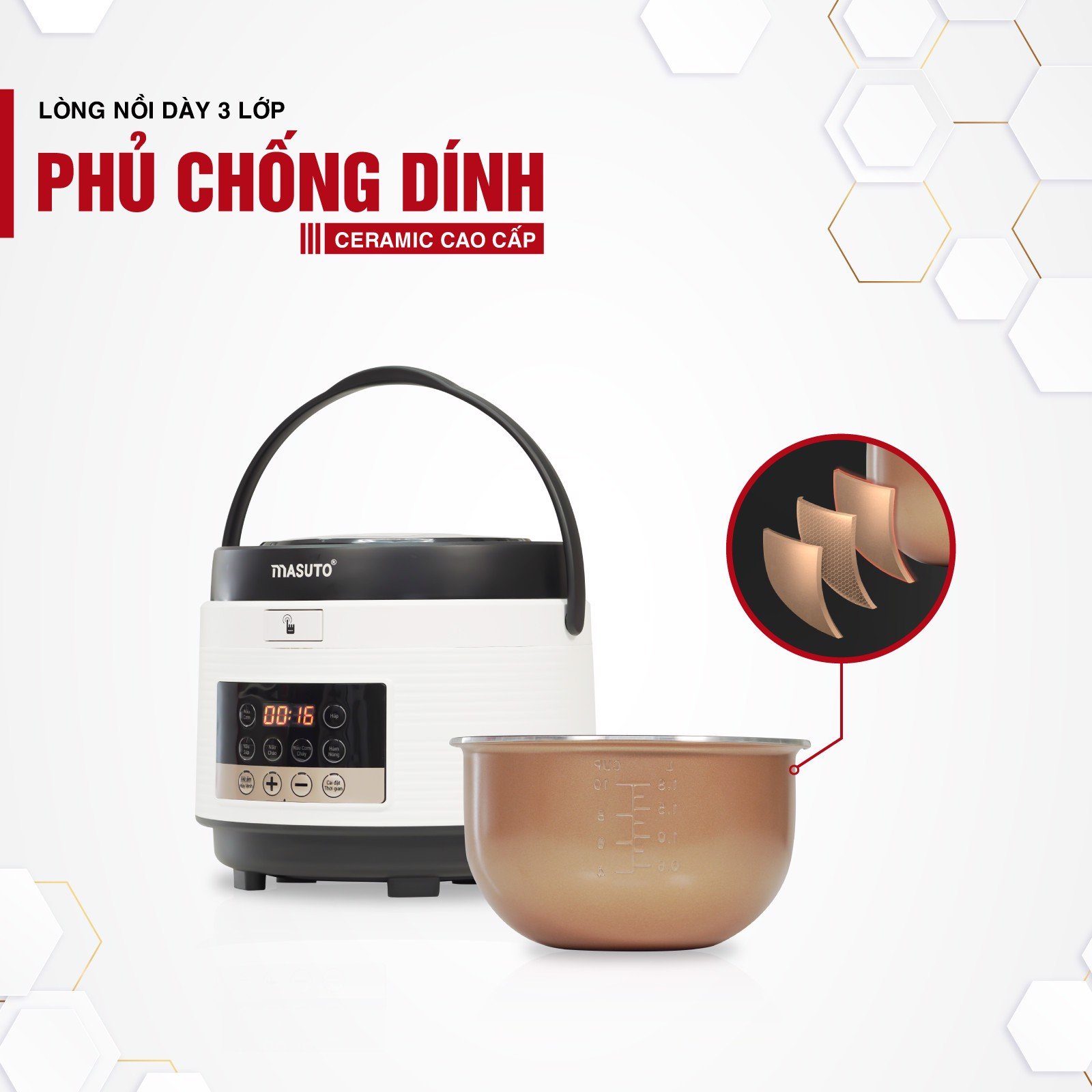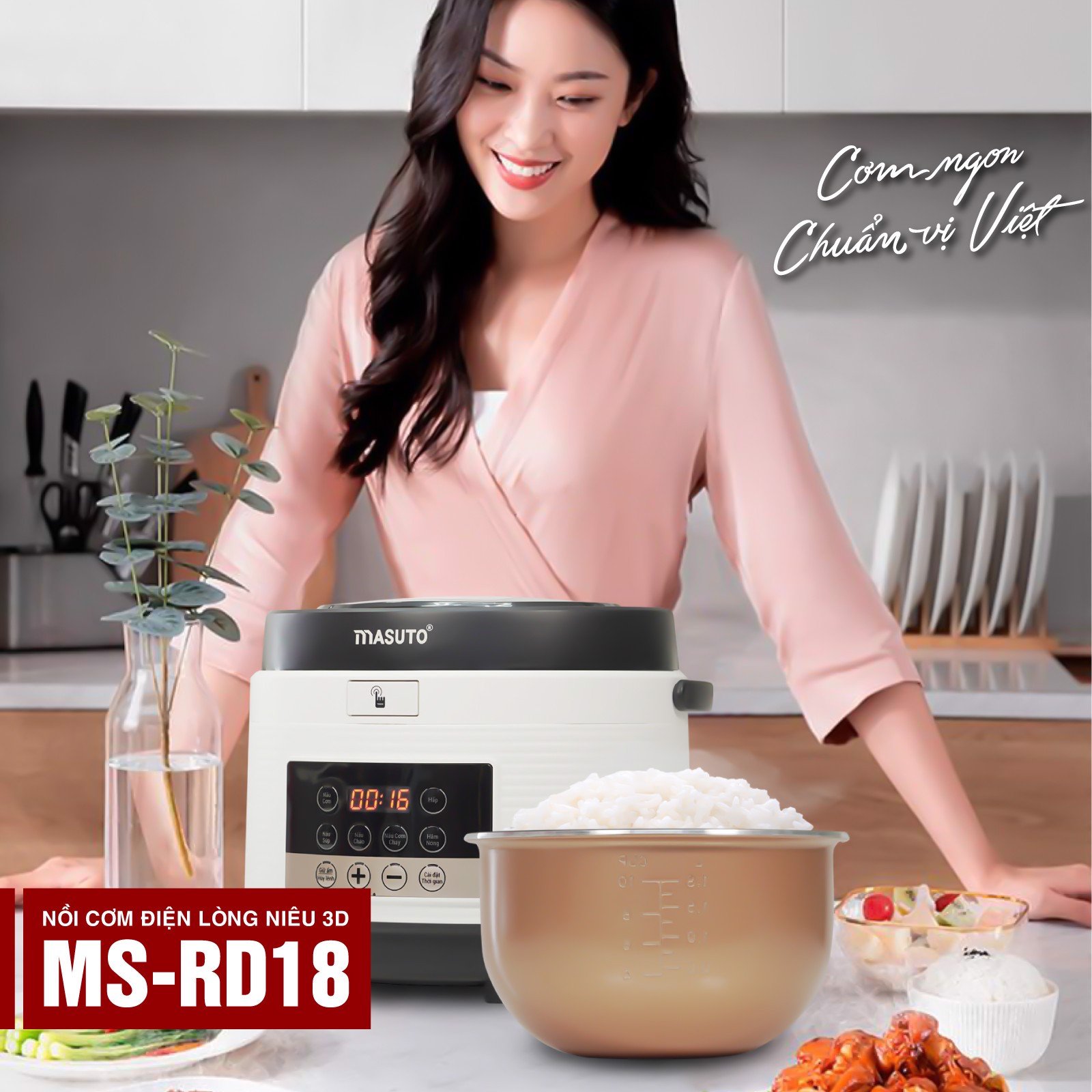 Nồi cơm điện tử lòng niêu 3D Masuto MS-RD18 không chỉ để nấu cơm, mà còn tích hợp đa dạng chế độ nấu nướng nhờ lòng nồi chống dính siêu cao cấp. bạn có thể nấu các món ăn theo các chức năng nấu được tích hợp sẵn như: nấu cơm, nấu cơm cháy, nấu cháo, giữ ấm, hâm nóng, hấp. Ngoài ra bạn cũng có thể nấu nhiều món ăn cùng lúc như: chiên rán, luộc rau, luộc gà, ăn lẩu, làm bánh......