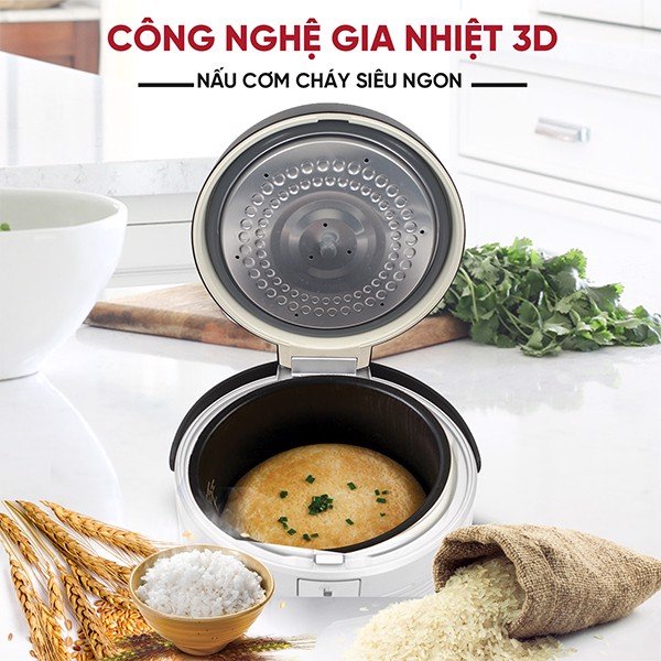 Công nghệ nấu cơm 3D, nhiệt lượng được truyền từ phía dưới, phía trên và xung quanh nồi giúp hạt gạo chín từ từ, đều từ bên trong ra bên ngoài. Giữ được 98‰ chất dinh dưỡng từ hạt gạo, có lợi cho sức khỏe.