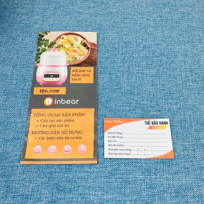 THÔNG TIN VỀ NỒI NẤU CHÁO CHẬM INBEAR + Model: IBS-3100 + Thể tích: 1,6L thố sứ + 1,5L khay hấp + Công suất: 220W + Dòng điện: 220-240V + Trọng lượng: 2,4kg