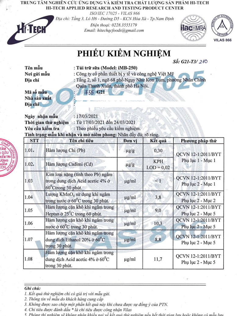 - Túi trữ sữa iMediCare IMB-200 được làm từ loại nhựa LDPE (hạt nhựa nguyên sinh) cao cấp, hãng cam kết không chứa BPA gây hại, được đơn vị FDA của Mỹ kiểm định và công nhận về độ an toàn dành cho trẻ nhỏ.